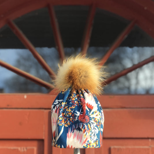 Ultramyk lue til dame toppet med valgfri pelsdusk. Dusken har vi sydd om av pensjonert pels, og kan tas av og på så du kan ha flere luer og flytte pelsdusken over. Tar du av dusken, er lua super til å bruke under hjelmen, i soveposen, under hetta og med hodelykt. Alt er sydd i Kongsberg.